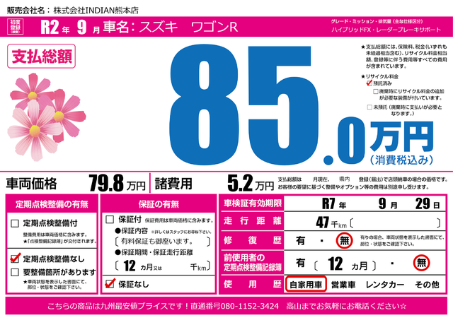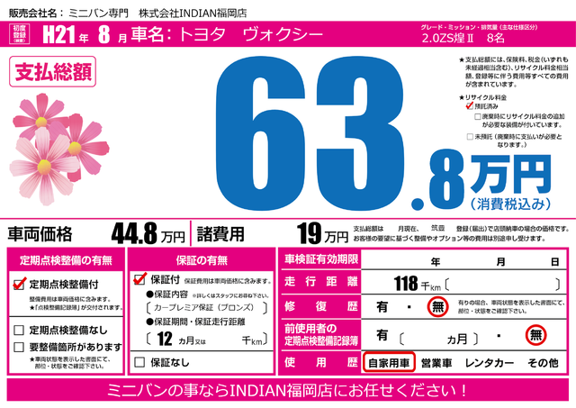 販売価格(支払い総額): 61.8万円 年式:2018年 走行距離: 4万km