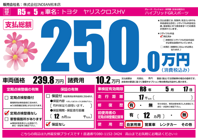 販売価格(支払い総額): 122万円 年式:2014年 走行距離: 10.8万km