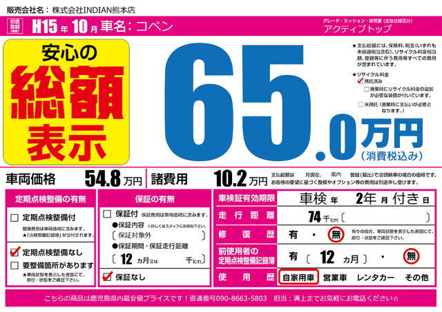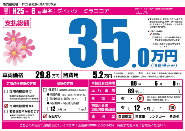 販売価格(支払い総額): 29.2万円 年式:2010年 走行距離: 12.7万km