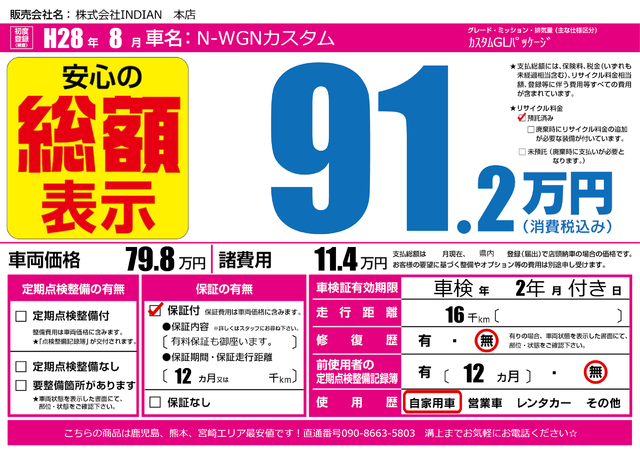 販売価格(支払い総額): 78.5万円 年式:2018年 走行距離: 8.5万km