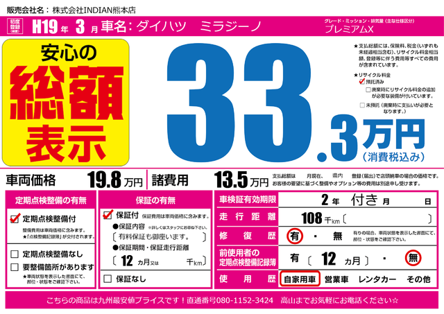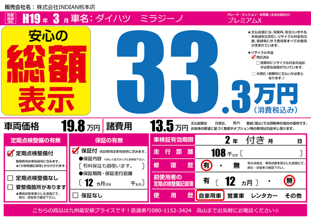販売価格(支払い総額): 95万円 年式:2011年 走行距離: 22.5万km