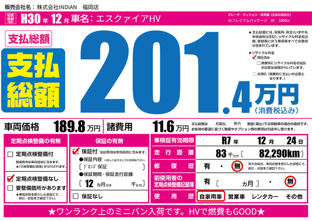 販売価格(支払い総額):116.9万円 年式:2018年 走行距離: 14.2万km
