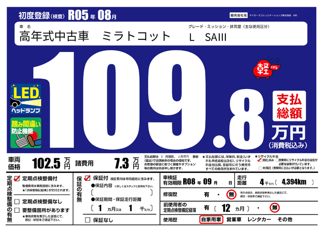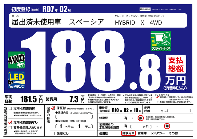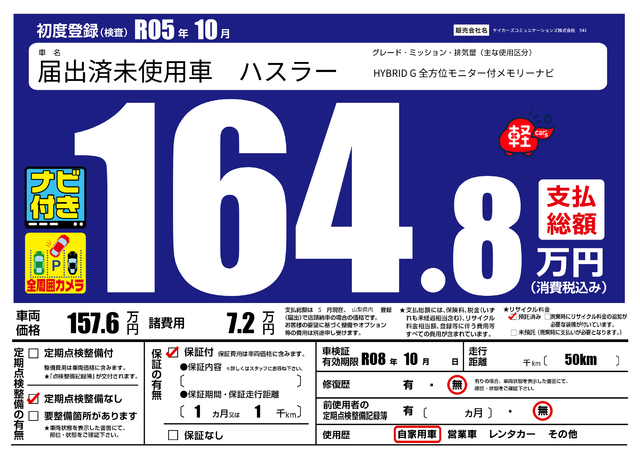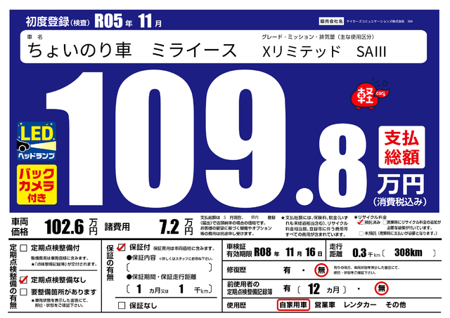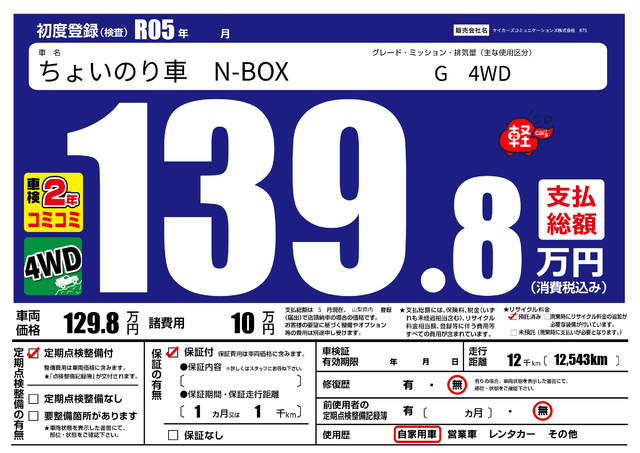 販売価格(支払い総額):149.8万円 年式: - 走行距離:1000km