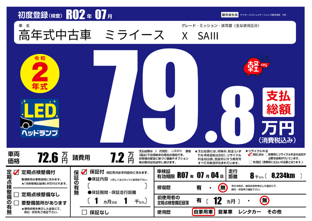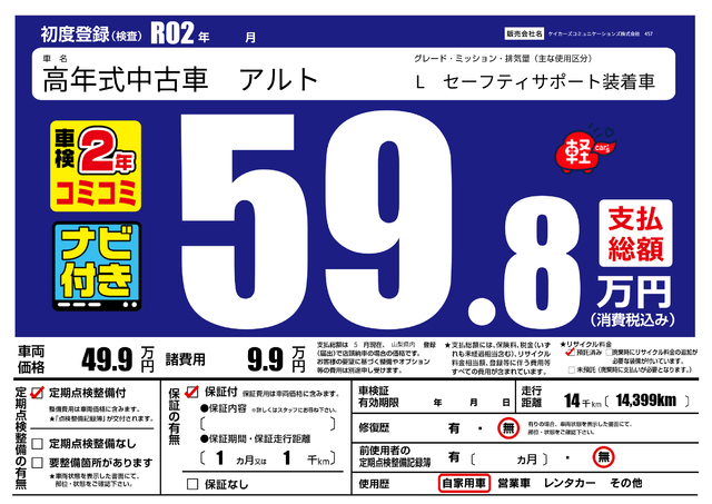 販売価格(支払い総額): 99.8万円 年式: - 走行距離: -