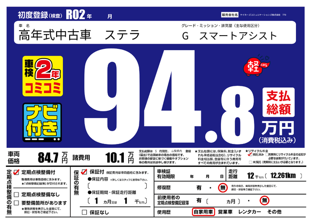 販売価格(支払い総額):154.8万円 年式: - 走行距離:4000km