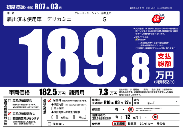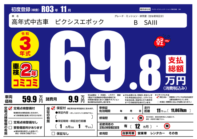 販売価格(支払い総額): 99.8万円 年式: - 走行距離:7000km