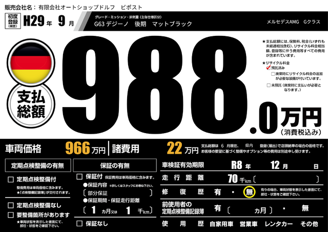 販売価格(支払い総額): 668万円 年式: - 走行距離: -