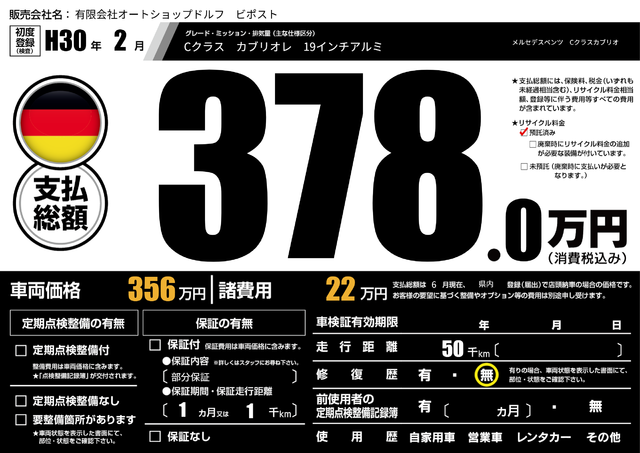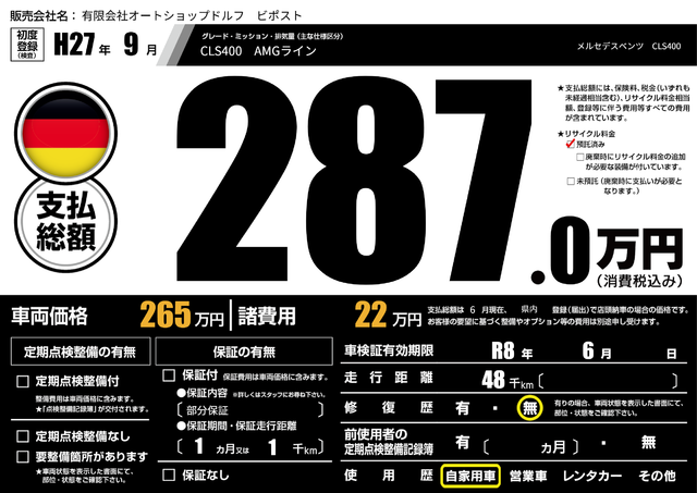 販売価格(支払い総額): 568万円 年式: - 走行距離: 3万km