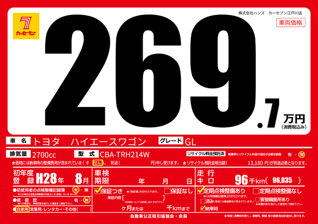 販売価格(支払い総額):179.7万円 年式:2015年 走行距離: 3.8万km