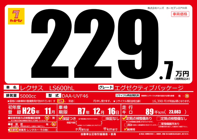 販売価格(支払い総額):299.7万円 年式: - 走行距離: 2.3万km
