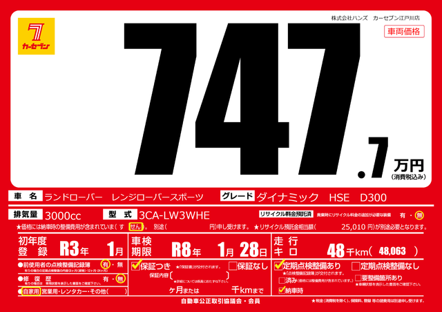 販売価格(支払い総額):684.7万円 年式: - 走行距離:3000km
