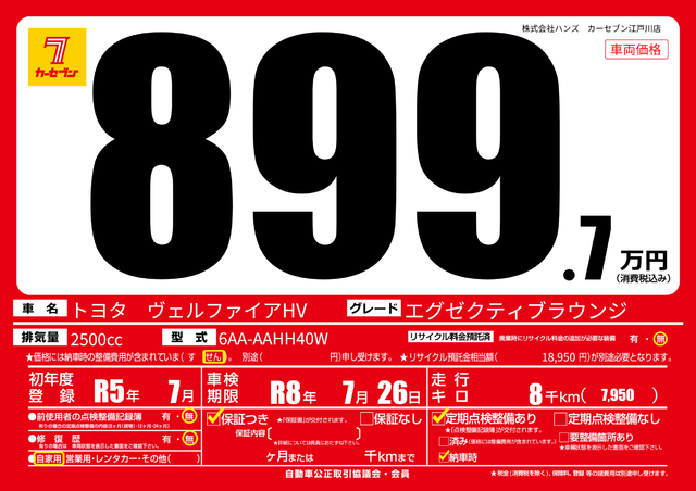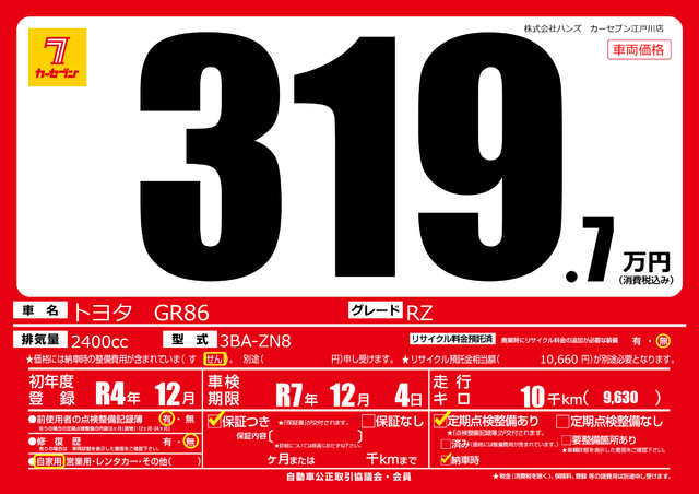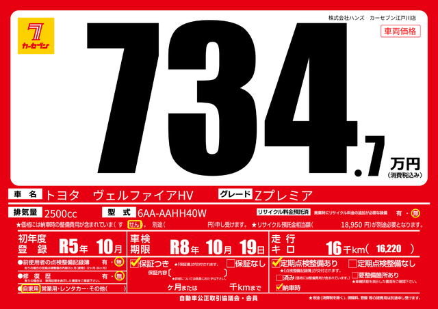 販売価格(支払い総額):714.7万円 年式: - 走行距離:4000km