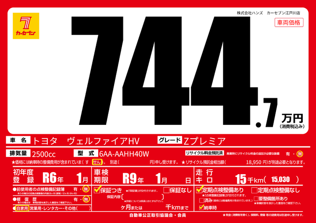 販売価格(支払い総額):174.7万円 年式:2015年 走行距離: 7.9万km