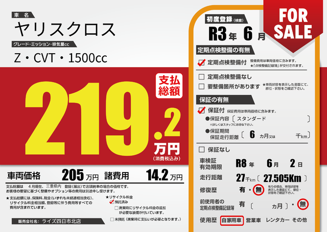 販売価格(支払い総額):229.4万円 年式: - 走行距離: 1.1万km