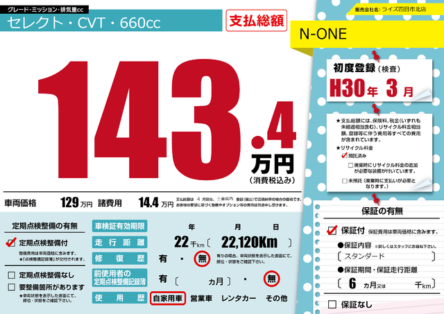 販売価格(支払い総額):123.4万円 年式:2018年 走行距離: 2.7万km