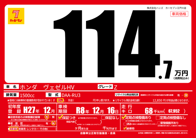 販売価格(支払い総額):179.7万円 年式:2015年 走行距離: 3.8万km